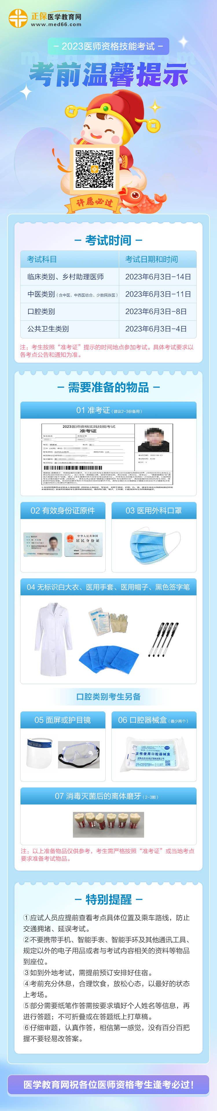 考前溫馨提醒:全國2023年醫(yī)師資格實踐技能考試考前準備/溫馨提示/基地名單匯總