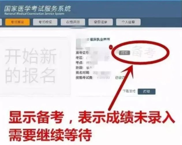 6.初次查詢,狀態(tài)顯示為“備考”,可能是成績暫未上傳至國家醫(yī)學(xué)考試網(wǎng),即成績查詢?nèi)肟跁何撮_通,比如陜西西安;或者需要在當(dāng)?shù)乜荚囍行牟樵儭?/p>