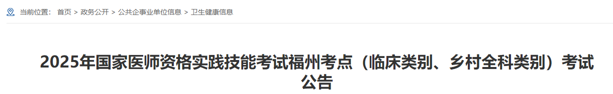 福建福州2025年醫(yī)師資格實(shí)踐技能(臨床|鄉(xiāng)村)考試公告