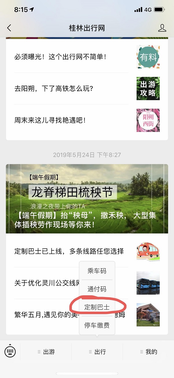 ⑴即日起,可通過桂林出行網(wǎng)微信公眾號發(fā)起定制公交乘坐需求,屆時會根據(jù)發(fā)起定制公交需求的用戶數(shù)量,上線相關(guān)產(chǎn)品,供考生選擇。如何發(fā)起: