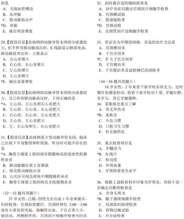 醫(yī)學綜合考試全部采用選擇題形式。各類選擇題均由題干和選項兩部分組成。題干是試題的主體,可由一段短語、問句或不完全的陳述句組成,也可由一段病例、圖表、照片或其它臨床資料來表示;選項由可供選擇的詞組或短句組成,也稱備選答案。