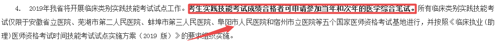 回答:在安徽2019年醫(yī)師現(xiàn)場審核公告中提到,臨床技能新三站試點考試考試成績合格者可申請參加當年和次年的醫(yī)學綜合筆試,也就是說成績2年有效。安徽和湖北試點目前公布的考試時間為6月10日-23日