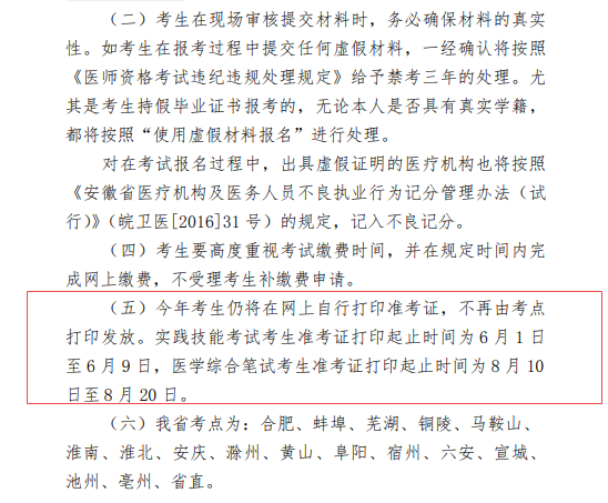 2020年安徽省省直醫(yī)師實(shí)踐技能考試準(zhǔn)考證打印時(shí)間