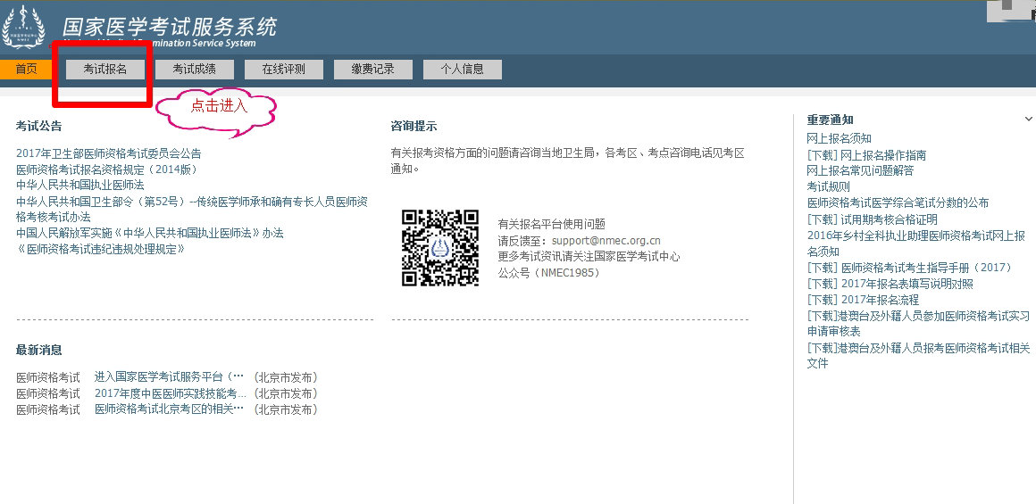 步驟一:打開國家醫(yī)學(xué)考試網(wǎng)網(wǎng)站,點右側(cè)的網(wǎng)上報名。
