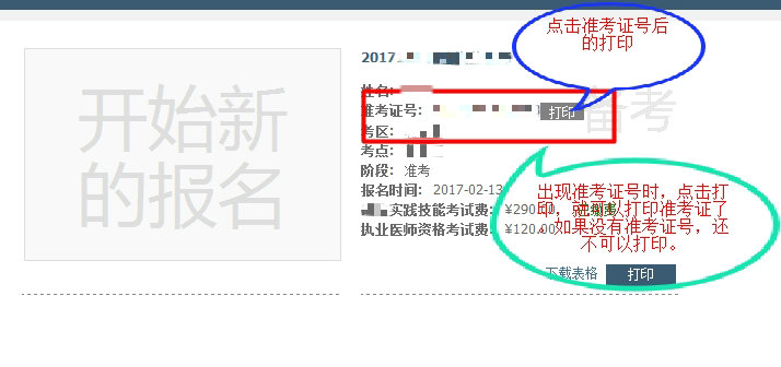 步驟五:點準(zhǔn)考證號后面的打印,如果沒有出現(xiàn)準(zhǔn)考證號則說明不能打印。