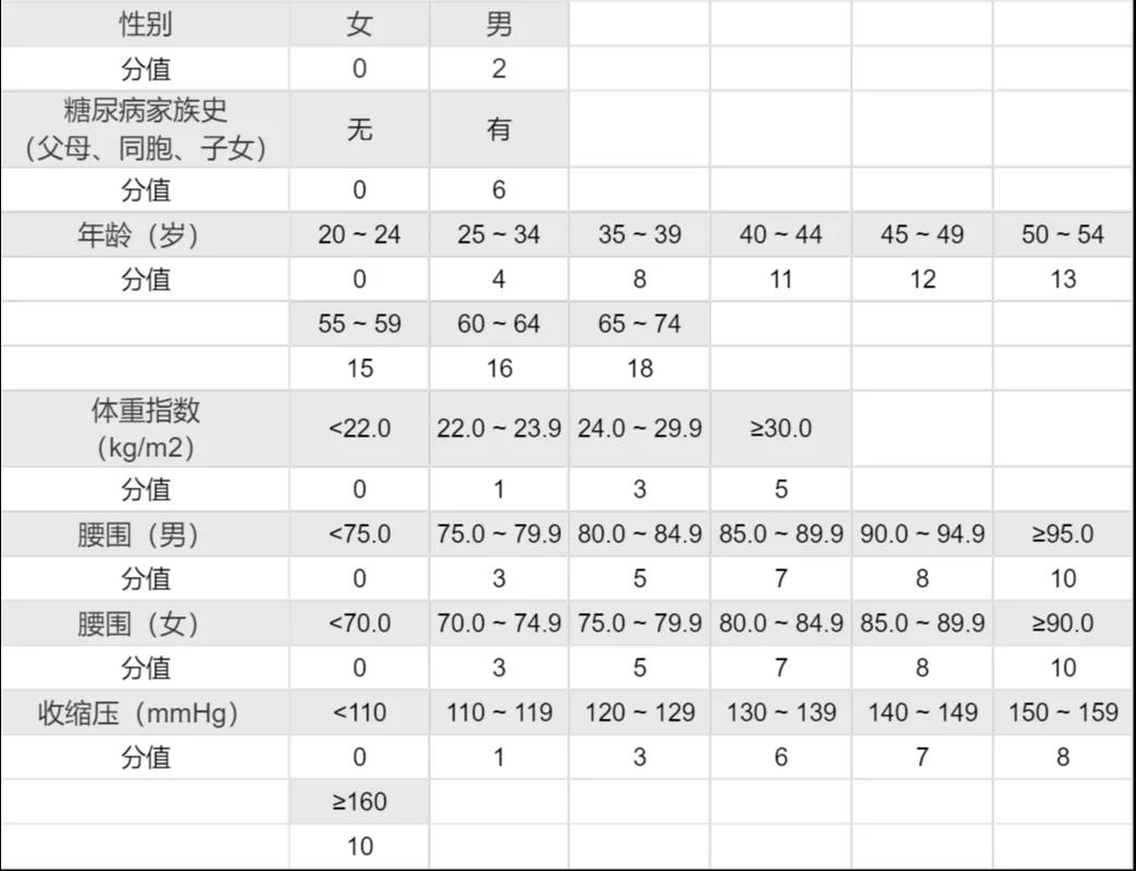 如果你還沒有過 35 歲,那么可以對(duì)照以下表格,如果得分超過 25 分,那么請(qǐng)你也一定在每年的體檢中增加血糖檢測(cè)。