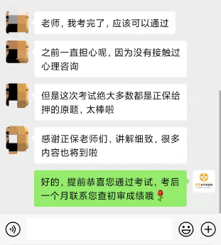 2023年11月心理咨詢師考試結(jié)束,老師收到了很多學員的考后反饋:“這次感覺還不錯,應(yīng)該沒問題”、“老師講的非常細致,有很多考試內(nèi)容細節(jié)都提到了”,還有很多對老師表達感謝的……現(xiàn)在小編將這些反饋整理出來,感謝大家一直以來對正保醫(yī)學教育網(wǎng)的的信任與認可。