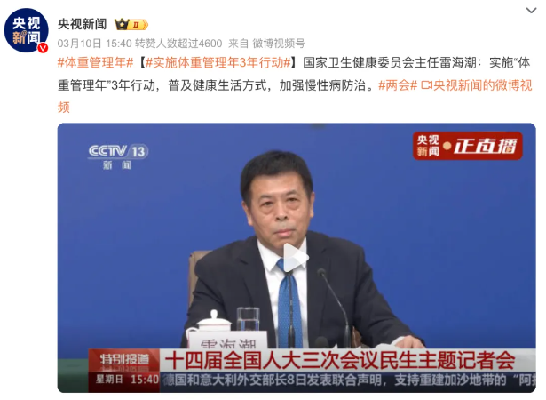 在2025年十四屆全國人大三次會議記者會上,國家衛(wèi)健委主任雷海潮直言道,并宣布持續(xù)推進“體重管理年”三年行動,呼吁全社會共同參與體重管理。