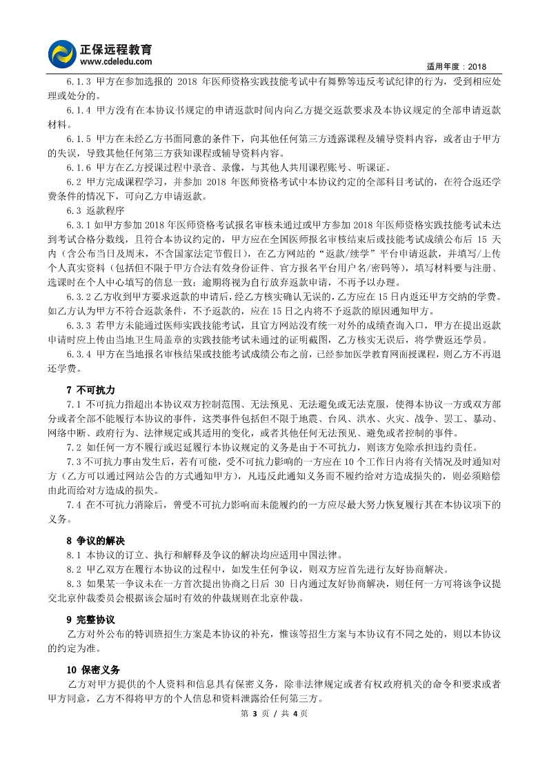 2018年醫(yī)學(xué)教育網(wǎng)精英特訓(xùn)班學(xué)員協(xié)議書