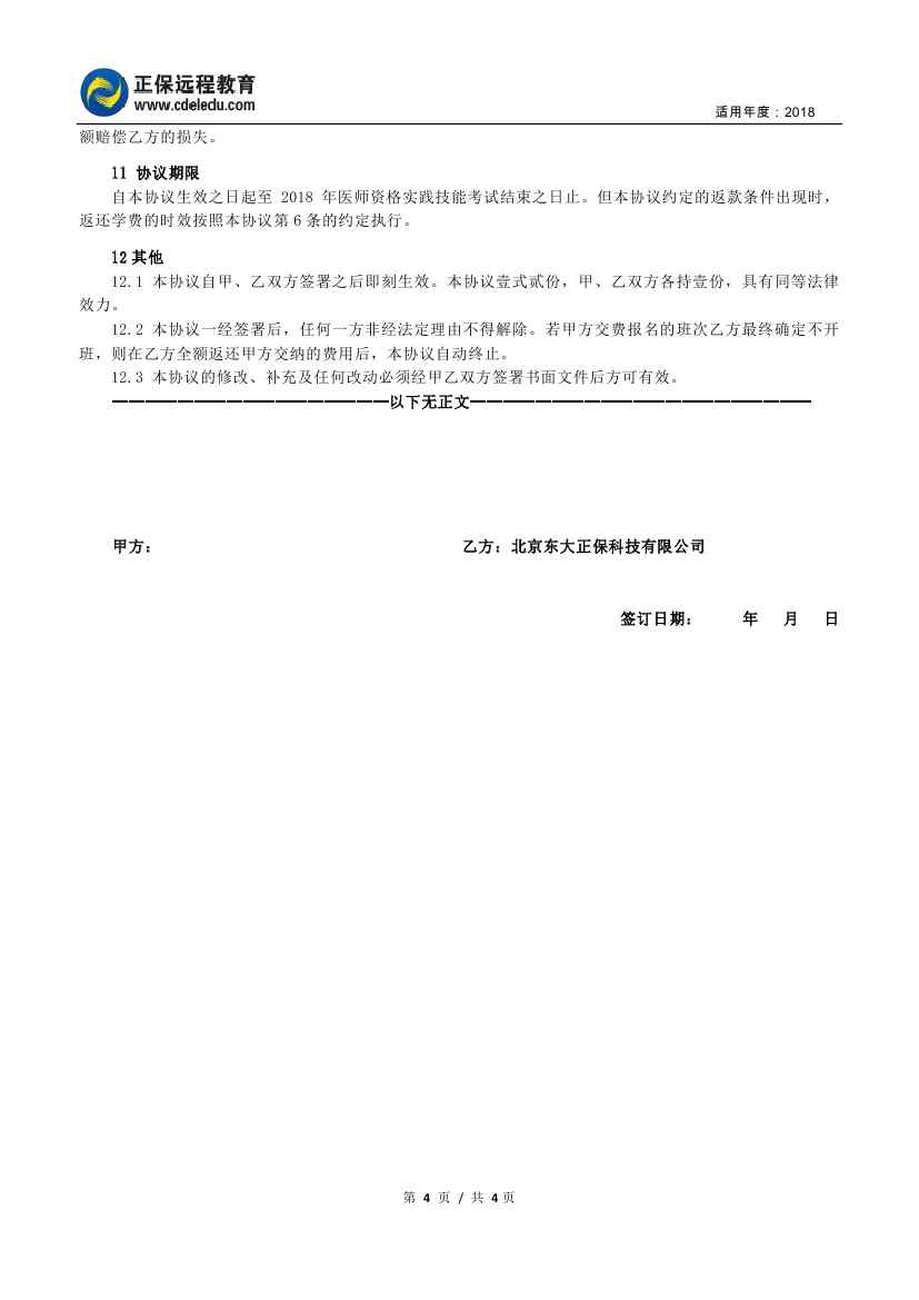 2018年北京醫(yī)學(xué)教育網(wǎng)實(shí)踐技能考前密訓(xùn)班學(xué)員協(xié)議書