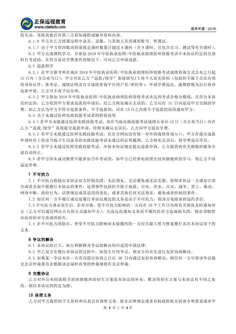 2018年中醫(yī)醫(yī)師面授全封閉旗艦班學(xué)員協(xié)議書