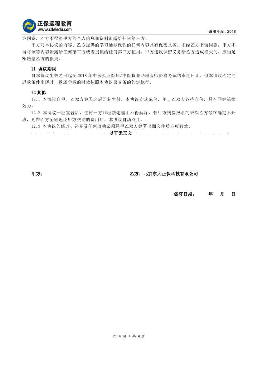 2018年中醫(yī)醫(yī)師面授全封閉旗艦班學(xué)員協(xié)議書
