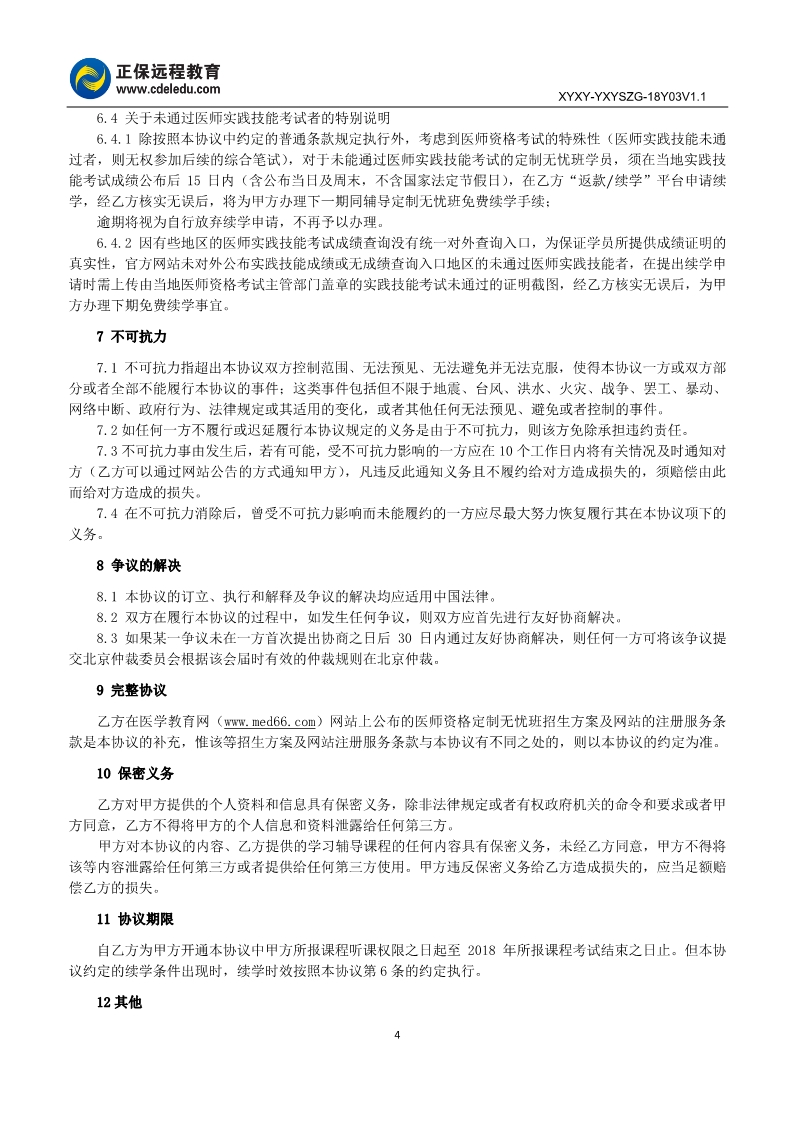 2018年醫(yī)師資格“定制無(wú)憂班”協(xié)議書