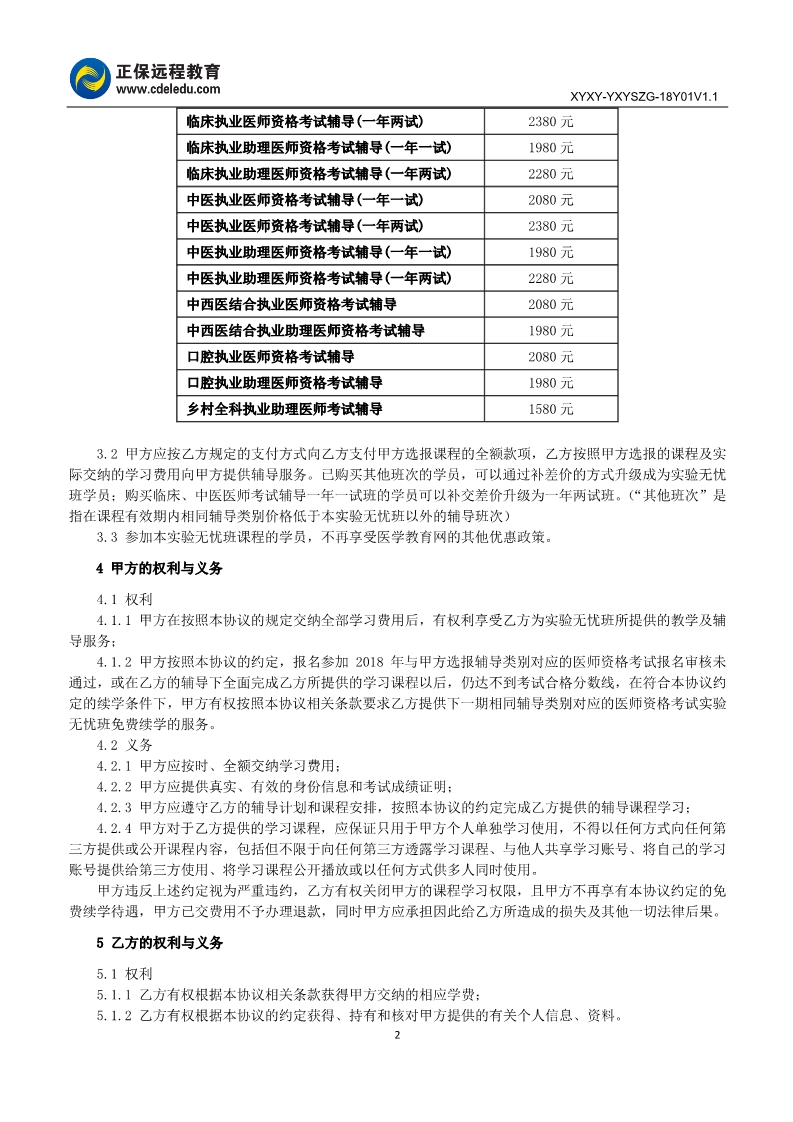 2018年醫(yī)師資格“實驗無憂班”協(xié)議書