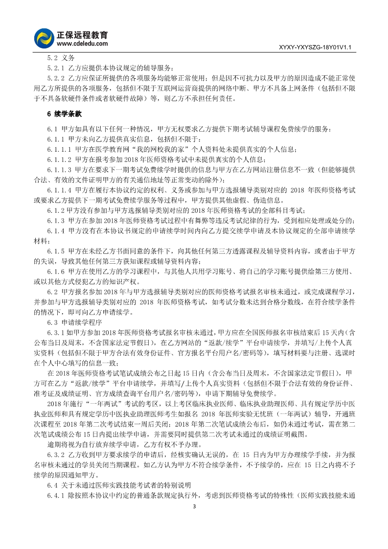2018年醫(yī)師資格“實(shí)驗(yàn)無憂班”協(xié)議書