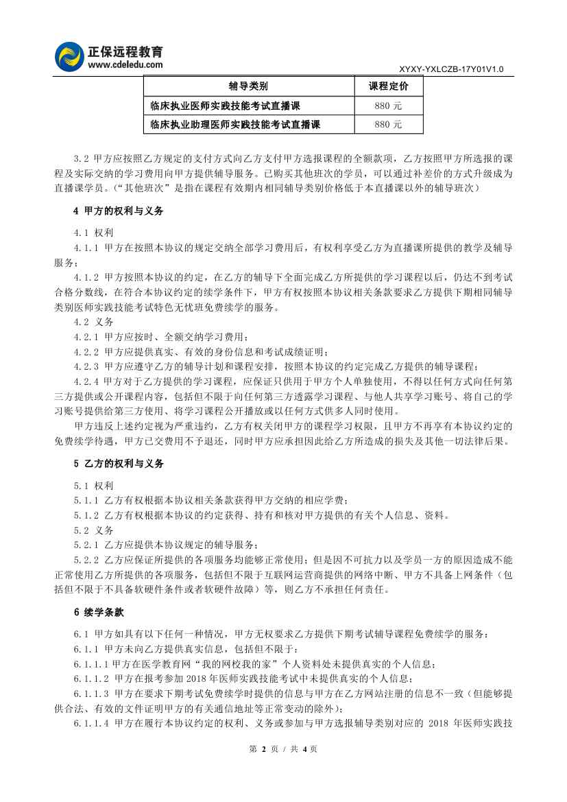 2018年臨床醫(yī)師技能“直播班”協(xié)議書(shū)