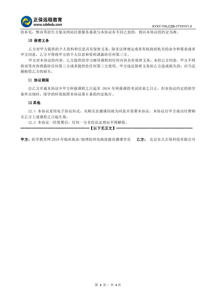 2018年臨床醫(yī)師技能“直播班”協(xié)議書(shū)