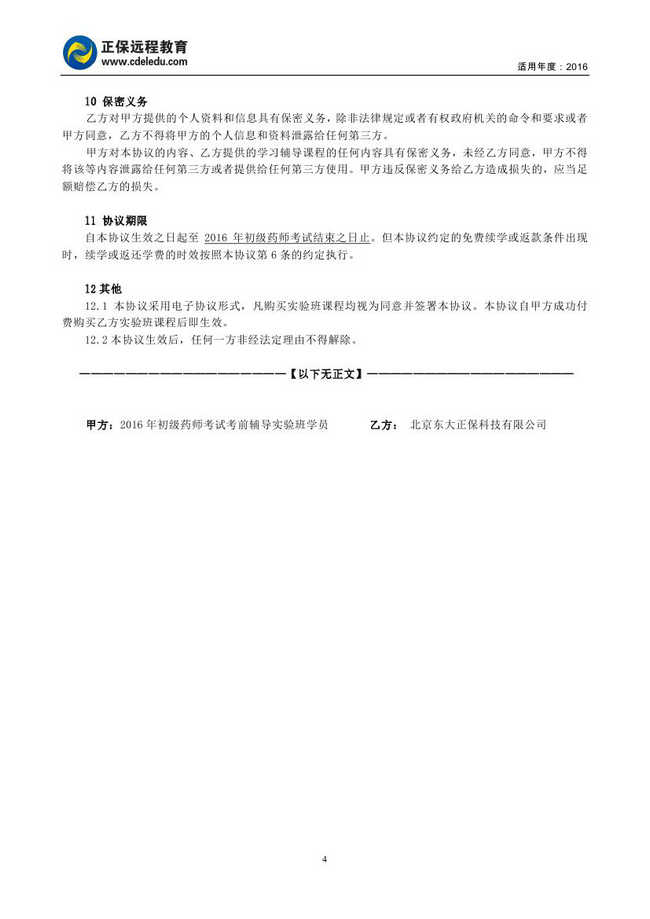初級藥師考試“實(shí)驗(yàn)班”協(xié)議書