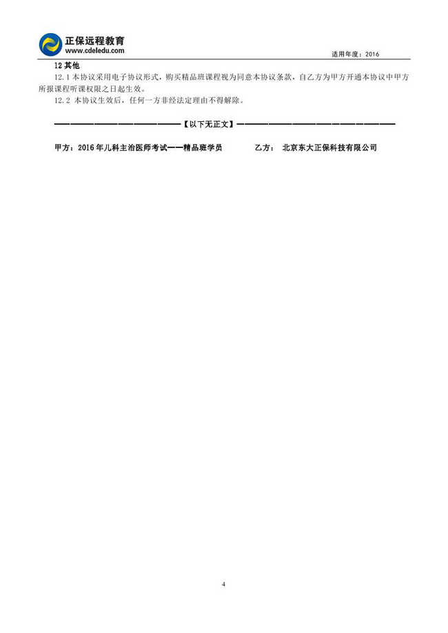 兒科主治醫(yī)師考試“精品班”協(xié)議書(shū)