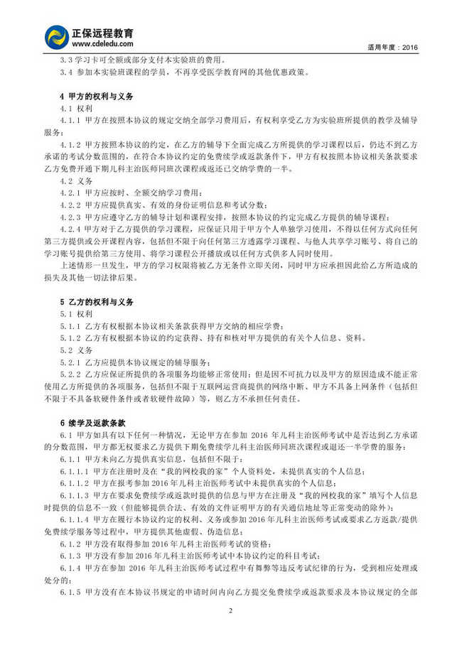 兒科主治醫(yī)師考試“實(shí)驗(yàn)班”協(xié)議書