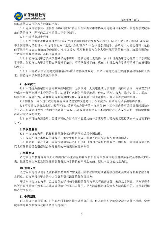 婦產(chǎn)科主治醫(yī)師考試“實驗班”協(xié)議書