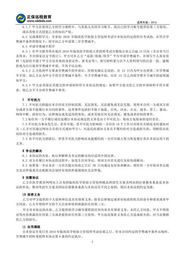 臨床醫(yī)學檢驗主管技師考試“精品班”協(xié)議書