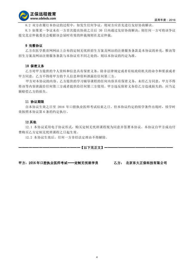 口腔執(zhí)業(yè)醫(yī)師“定制無(wú)憂(yōu)班”協(xié)議書(shū)