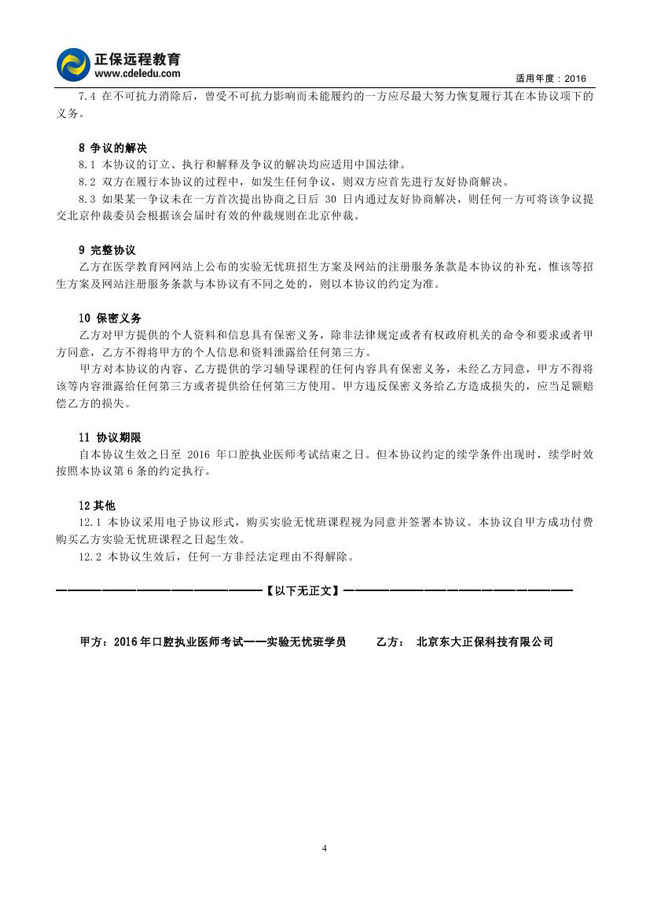 口腔執(zhí)業(yè)醫(yī)師“實驗無憂班”協(xié)議書