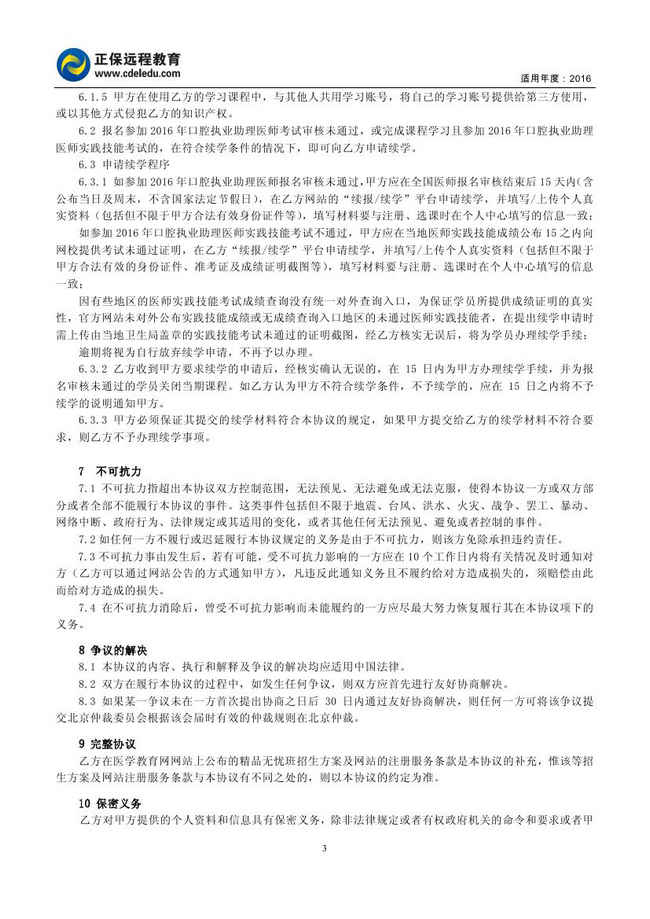 口腔執(zhí)業(yè)助理醫(yī)師“精品無憂班”協(xié)議書