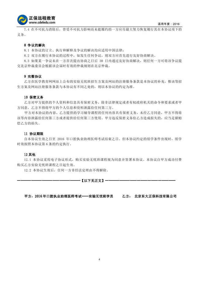 口腔執(zhí)業(yè)助理醫(yī)師“實(shí)驗(yàn)無(wú)憂班”協(xié)議書(shū)