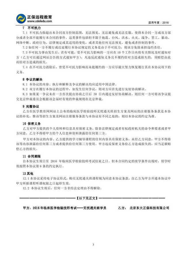 臨床醫(yī)學(xué)檢驗技師考試“無憂通關(guān)班”協(xié)議書