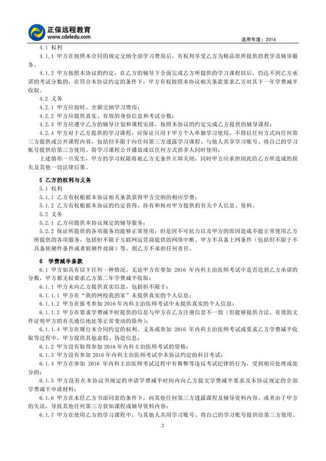 內(nèi)科主治醫(yī)師考試“精品班”協(xié)議書