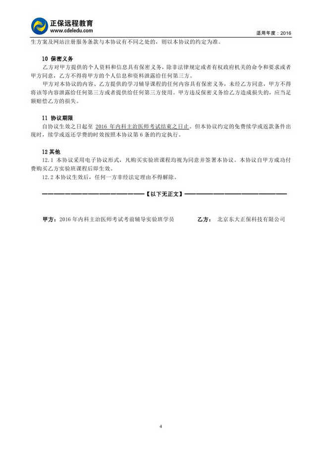 內(nèi)科主治醫(yī)師考試“實驗班”協(xié)議書