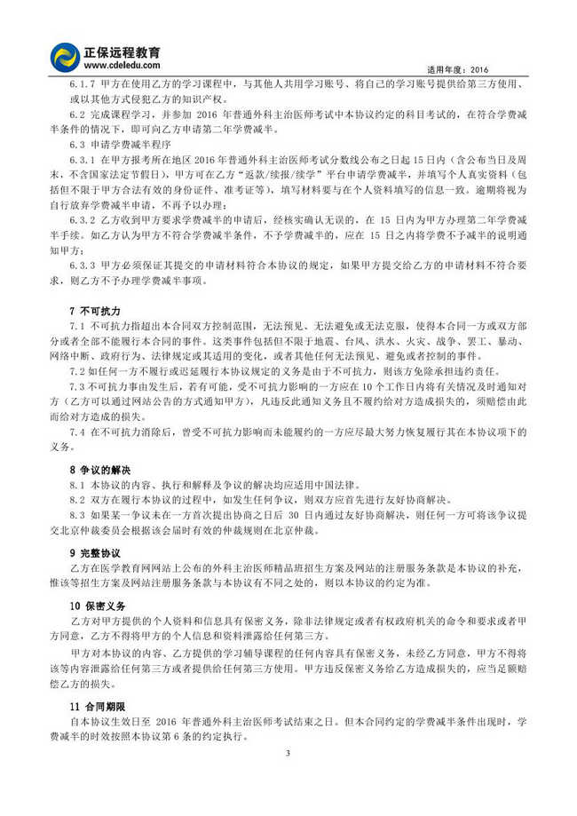 外科主治醫(yī)師考試“精品班”協(xié)議書