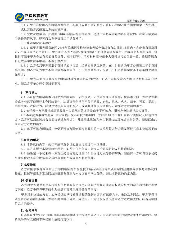 臨床醫(yī)學(xué)檢驗(yàn)技士考試“精品班”協(xié)議書
