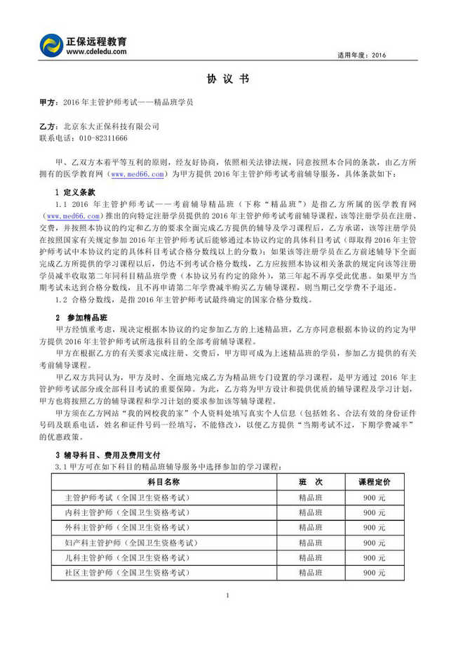 主管護(hù)師“精品班”協(xié)議書