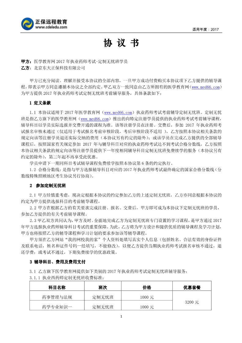 執(zhí)業(yè)藥師“定制無憂班”協(xié)議書