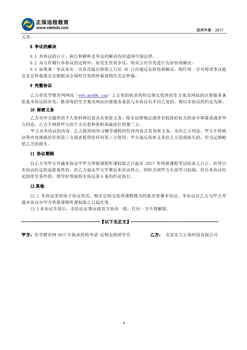執(zhí)業(yè)藥師“定制無憂班”協(xié)議書
