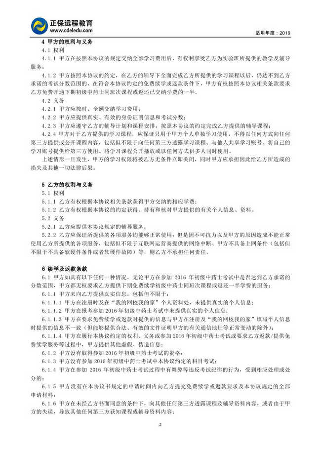 初級(jí)中藥士考試“實(shí)驗(yàn)班”協(xié)議書