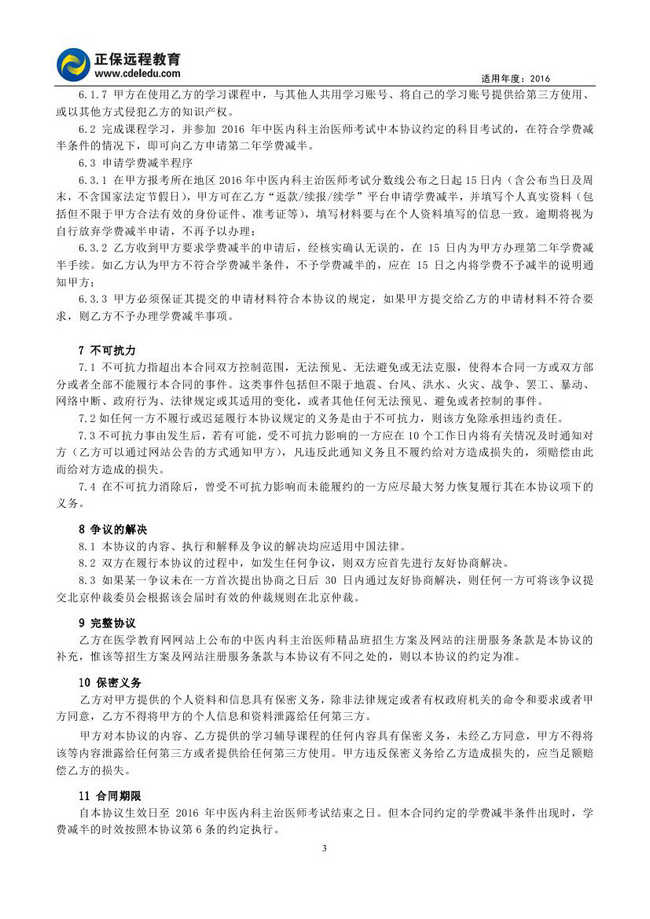 中醫(yī)內(nèi)科主治醫(yī)師考試“精品班”協(xié)議書