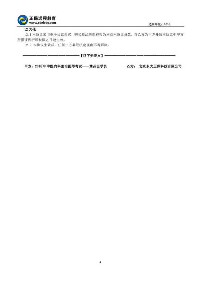 中醫(yī)內(nèi)科主治醫(yī)師考試“精品班”協(xié)議書