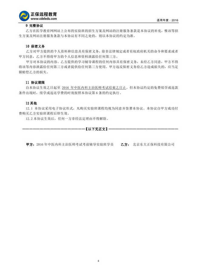 中醫(yī)內(nèi)科主治醫(yī)師考試“實驗班”協(xié)議書