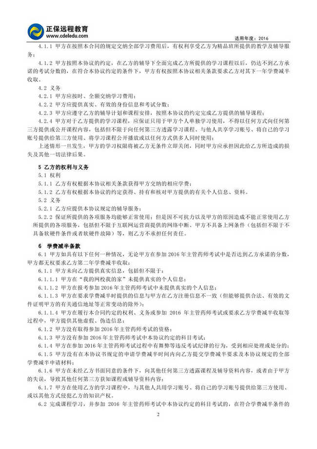 主管藥師考試“精品班”協(xié)議書(shū)