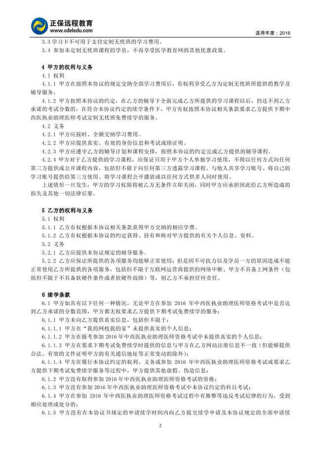 中西醫(yī)結(jié)合執(zhí)業(yè)助理醫(yī)師“定制無憂班”協(xié)議書