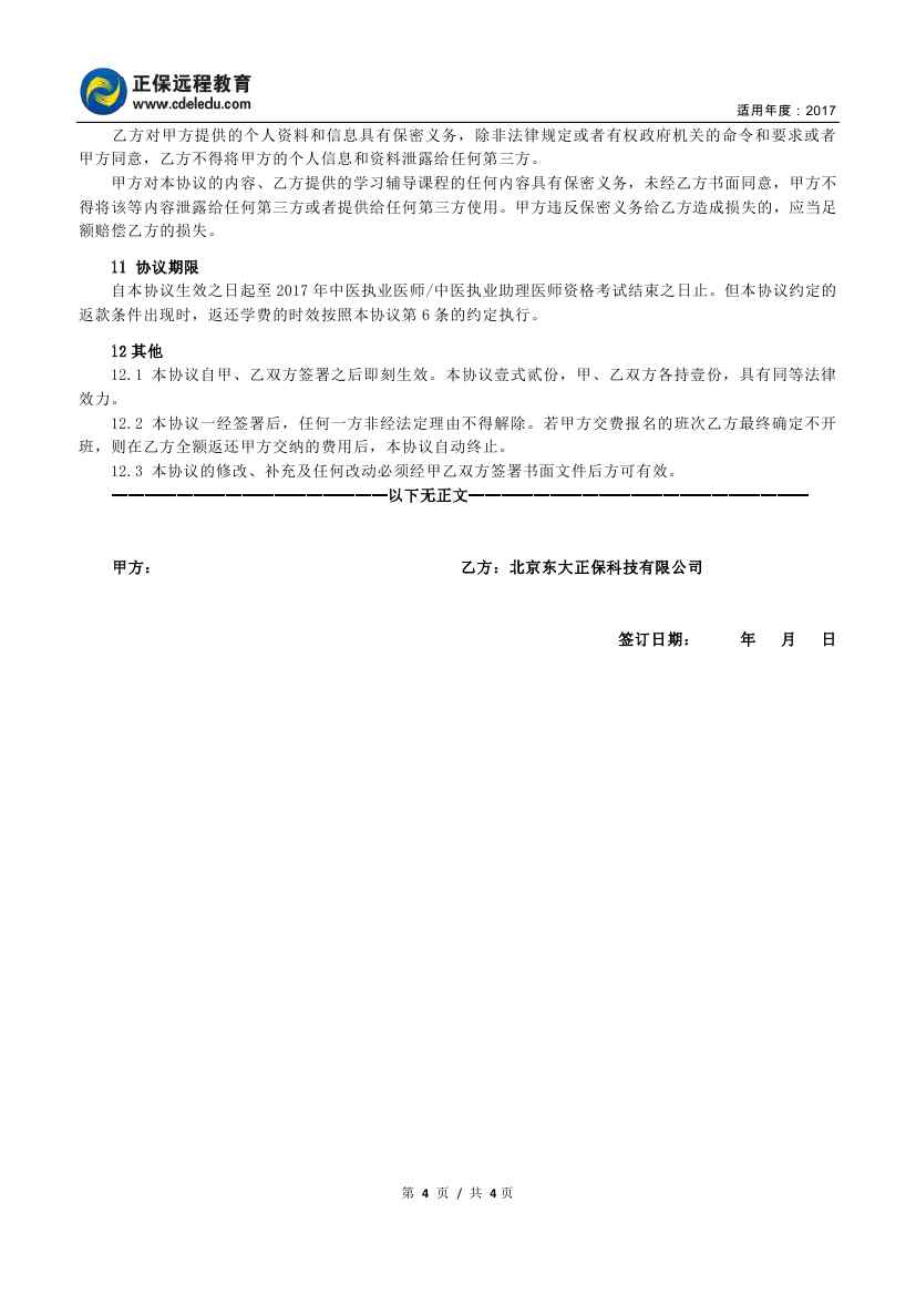 中醫(yī)醫(yī)師“面授全封閉旗艦班”協(xié)議書(shū)