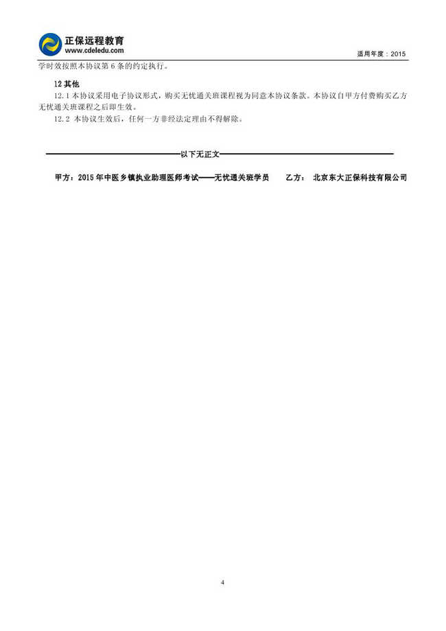中醫(yī)鄉(xiāng)鎮(zhèn)助理醫(yī)師“無憂通關班”協(xié)議書