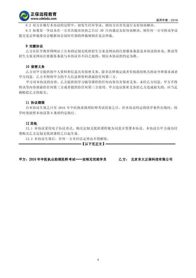 中醫(yī)執(zhí)業(yè)助理醫(yī)師“定制無(wú)憂班”協(xié)議書