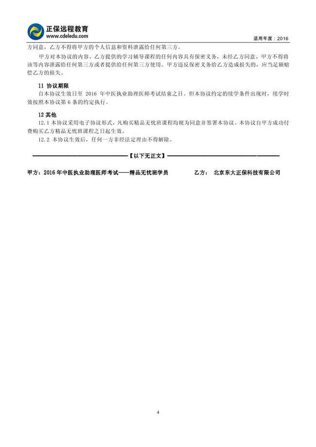 中醫(yī)執(zhí)業(yè)助理醫(yī)師“精品無憂班”協(xié)議書