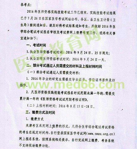醫(yī)學(xué)教育網(wǎng)小編整理了2016年天津市寶坻區(qū)醫(yī)師資格綜合筆試有關(guān)事宜通知,具體如下: