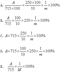 解答:根據(jù)Lambert—Beer定律,A=ECL(L通常為1),首先計(jì)算測(cè)定溶液的濃度C(%)=A/E,然后根據(jù)稀釋倍數(shù)和取樣量in計(jì)算樣品的百分含量。這里需要注意由A=ECL計(jì)算得到的C為百分濃度,在乘上稀釋倍數(shù)時(shí)應(yīng)被抵消,故答案為A。